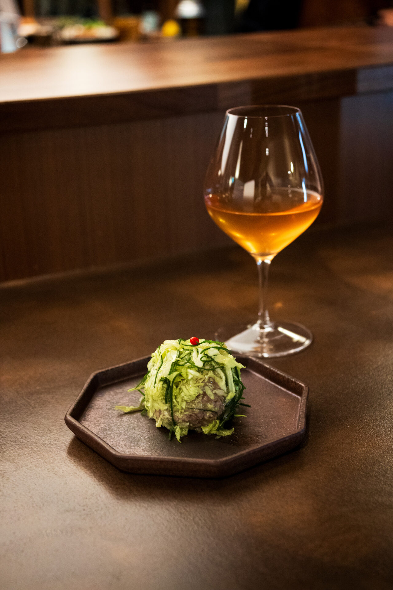 MuM’の料理監修をしてくれている、SNS総フォロワー数3万人の竹矢氏の料理と、クインディのソムリエ村上がセレクトするドリンク。